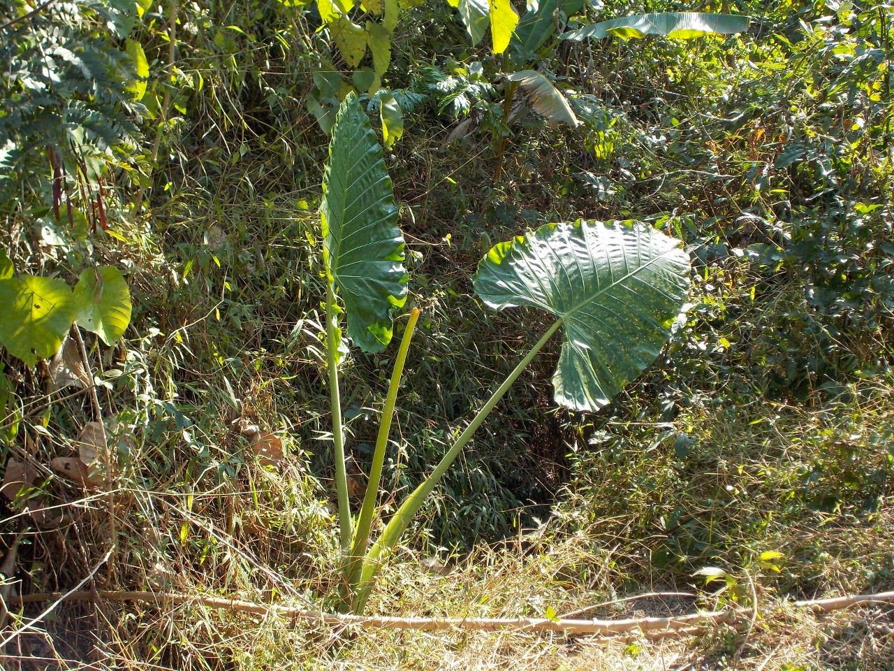 | See this big leaved plant. Apparently you can crush a leaf and taste it, if it tastes bitter you are OK, but if it tastes sweet you have dengue fever! |