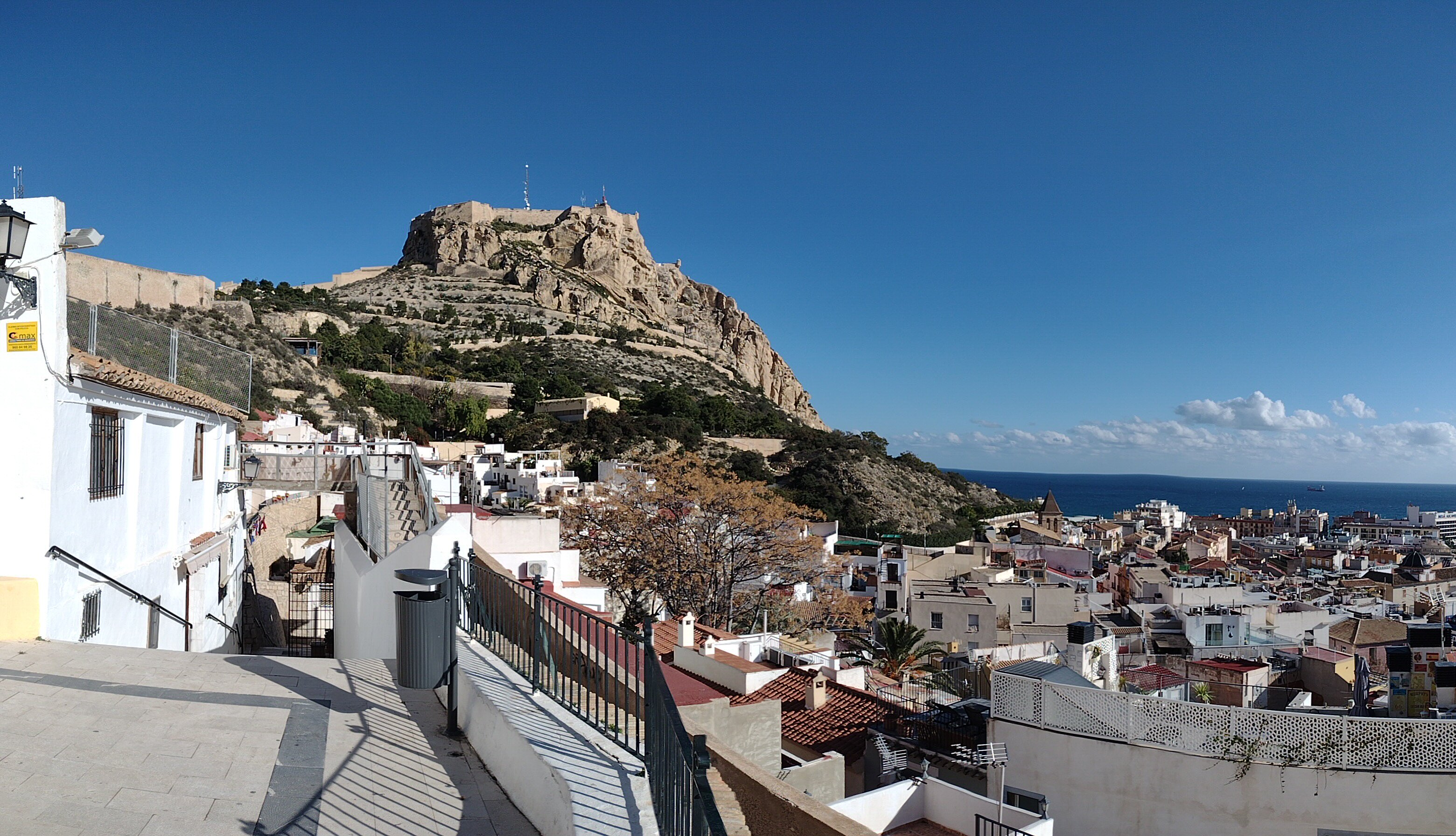 Thursday we went by tram, for the sum of €1.45, into Alicante to tour the castle, the MACA (Museum of modern art) and the old town. We didn’t go to the MARQ despite it being highly recommended as it seemed quite an ancient history museum and we’ve done quite a lot of Romans this summer in St. Albans and Salisbury. We thought we’d have a little tapas for lunch, before returning to Ted for my version, but as ever, a small lunch never seems to happen so no dinner required (walk with more photos: click here).